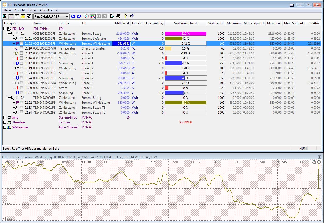 Alle 10 Sekunden werden die Messwerte von bis zu 16 Zählern auf einem Laptop / PC gespeichert |