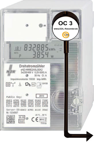 eHZ-Energiezähler mit aufgesetztem Optokopf OC 3 |